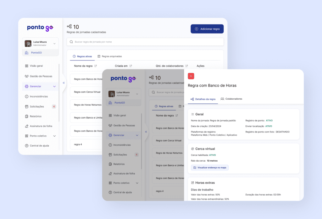 Gerencie todas as regras de jornadas e turnos da sua empresa por meio de funcionalidades que ajudam a organizar a rotina de departamento pessoal.